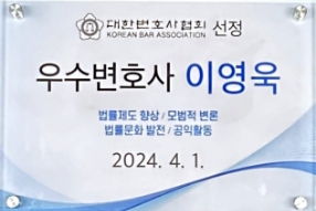 - 대한변협 선정 우수변호사(2024. 4.)